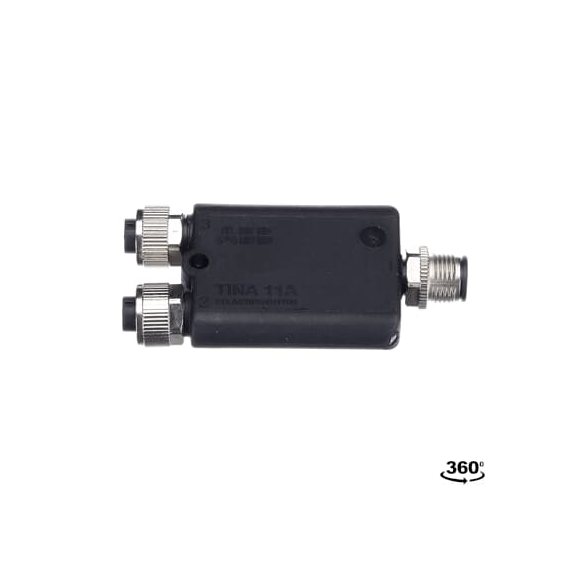 Tina 11A to blok przyłączeniowy do szeregowego łączenia dwóch urządzeń DYNlink ze złączami M12-5. Dwa złącza żeńskie M12-5 dla urządzeń i jedno złącze męskie M12-5 w kierunku pętli DYNlink.