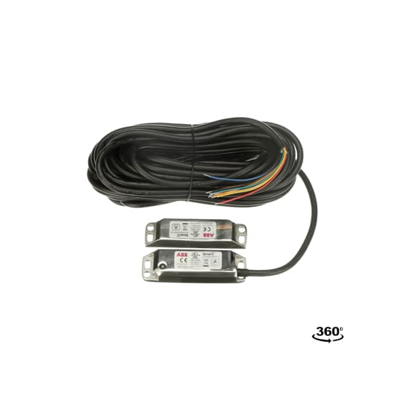 Magnetyczny wyłącznik bezpieczeństwa w komplecie z aktywatorem, 2NC+1NO (osłona zamknięta i aktywator obecny), stal nierdzewna, dioda LED, kabel 10m (8 przewodów).