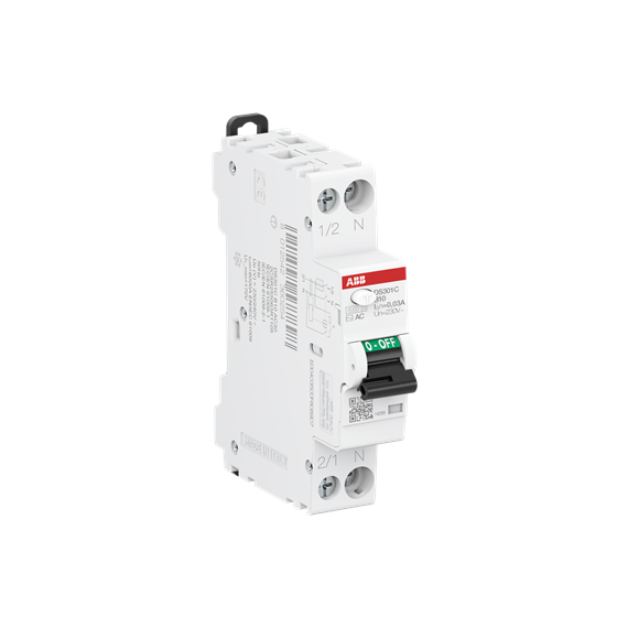 DS301C typ AC, charakterystyka B. Funkcja: ochrona obwodów jednofazowych użytkownika końcowego przed prądami przeciążeniowymi i zwarciowymi; zabezpieczenie przed prądami upływu do ziemi o przebiegu