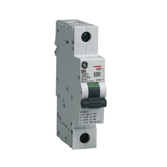 G61 wyłącznik nadmiarowo-prądowy, 1P, charakterystyka D, 6kA (EN/IEC 60898-1), trwałość mechaniczna/łączeniowa 20000/10000,