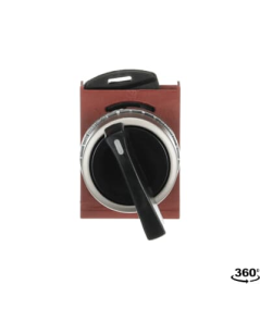 Przełącznik selektorowy P9MSVX5N: modułowy metalowy - przełącznik selektorowy z uchwytem - 4-pozycyjny - podtrzymywany/chwilowy - długi uchwyt - czarny - niepodświetlany - metalowy chrom satynowy
