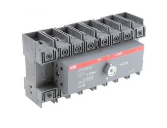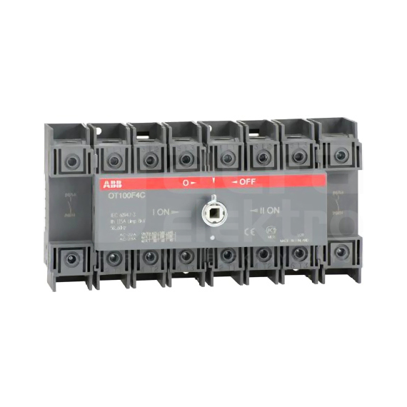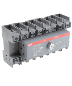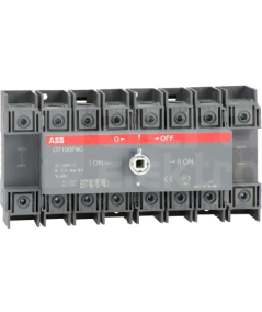 OT100F4C przełącznik (I-0-II) 100A, 4P, napęd z przodu, bez wałka i rączki, osłona zacisków kablowych IP20, montaż na płycie montazowej.