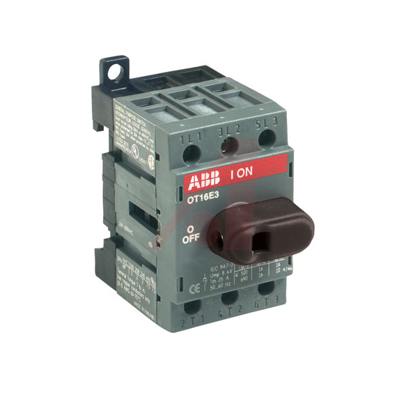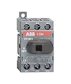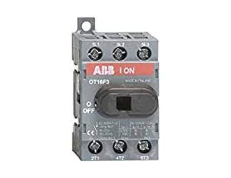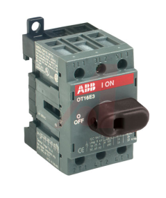 OT16F3 rozłącznik izolacyjny 16A, 3P, napęd z przodu, bez wałka i rączki, osłona zacisków kablowych IP20, montaż na płycie montażowej.