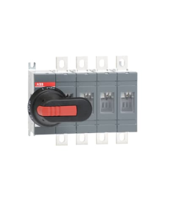 OT200E04P Rozłącznik izolacyjny 200A, 4P, napęd z przodu, z wałkiem i czarną rączką IP65, montaż na płycie montażowej, zestaw ś