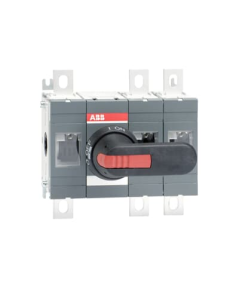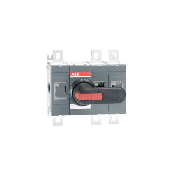 OT400E12P Rozłącznik izolacyjny 400A, 3P, napęd z przodu, z wałkiem i czarną rączką IP65, montaż na płycie montażowej, zestaw ś
