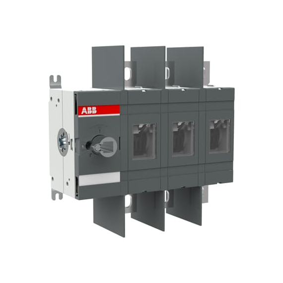 3-biegunowy, obsługiwany z przodu, montowany na podstawie wyłącznik rozłączający bez bezpiecznika, uchwyt i wałek nie są dołączone, w zestawie znajduje się zestaw śrub zaciskowych