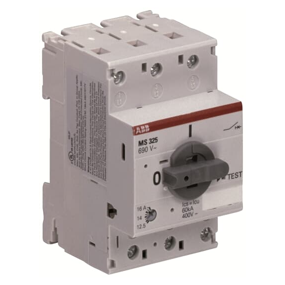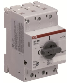 MS325-1,6, wyłącznik silnikowy z zabezpieczeniem termicznym i elektromagnetycznym, kompaktowy aparat do zabezpieczania silników, szerokość 54 mm. Ie = 1,6 A. Urządzenie służy do ręcznego załączania silników elektrycznych oraz stanowi zabezpieczenie przed zwarciem i przeciążeniem. Zapewnia zdolność zwarciową do Ics = 100 kA przy 400 VAC i klasę wyzwalania 10A. Dodatkowo ma wbudowaną funkcję rozłączania, kompensację temperatury, mechanizm swobodnego wyzwalania i pokrętło z wyraźnym wskazaniem położenia przełącznika. Wyłącznik silnikowy nadaje się do instalacji trój- i jednofazowych. Dostępne akcesoria to styki pomocnicze, styki sygnalizacyjne, wyzwalacze podnapięciowe, wyzwalacze napięciowe, bloki zasilające i urządzenia blokujące do ochrony przed nieautoryzowanymi zmianami.